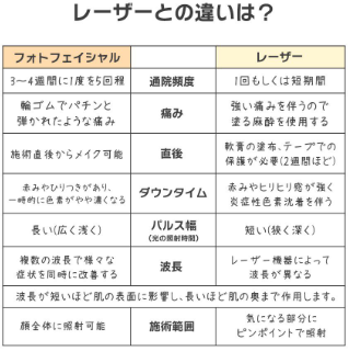 ちなみに、レーザーとフォトフェイシャル違いはこちら!